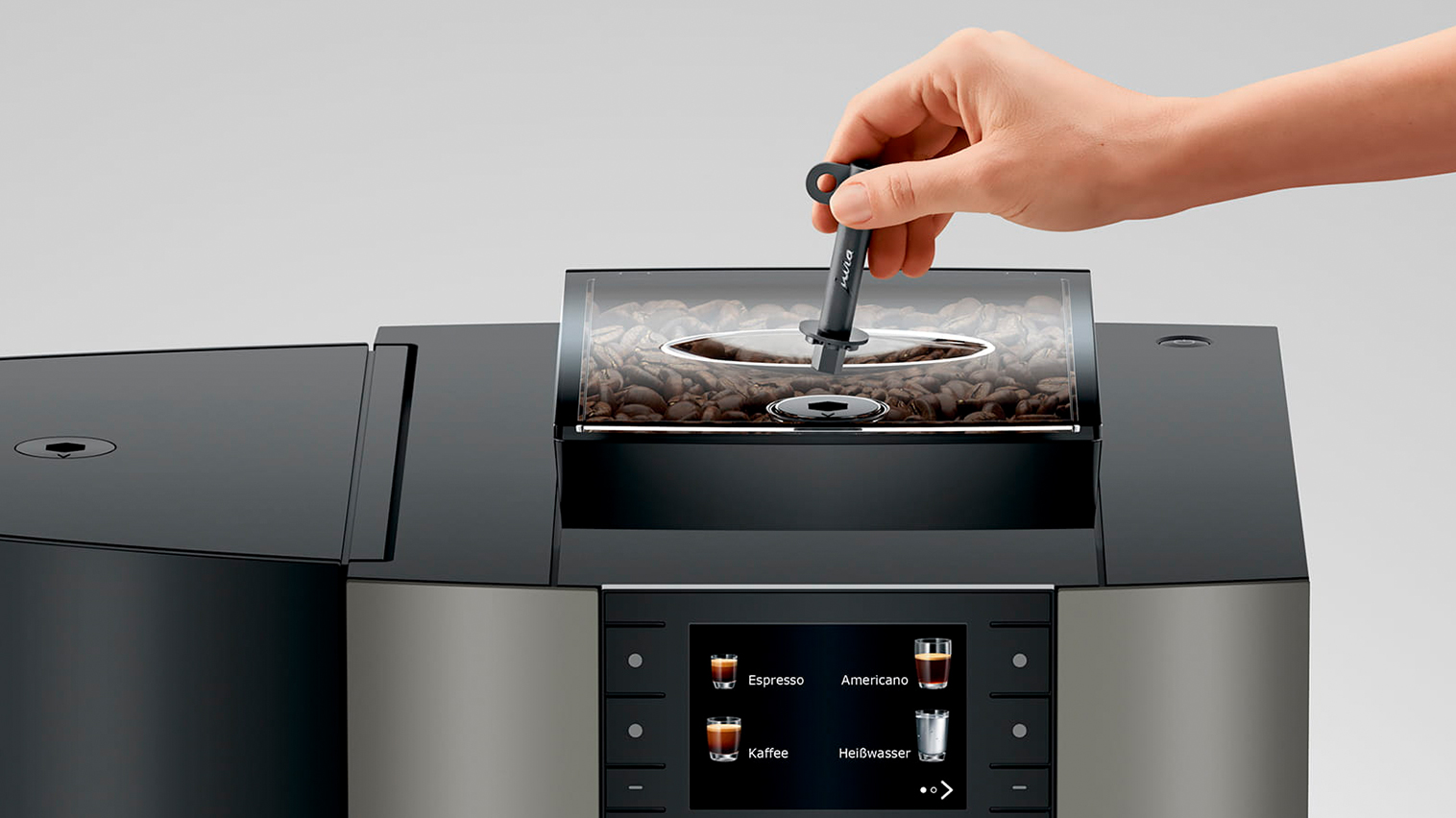 Maskinen är utrustad med en liten nyckel som kan användas för att låsa vattentanken och bönbehållaren.